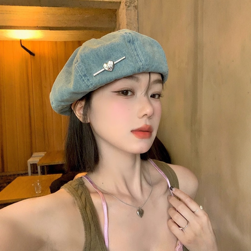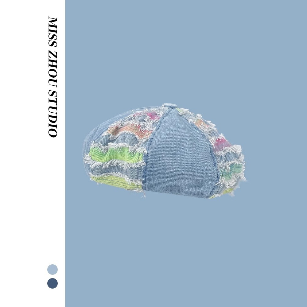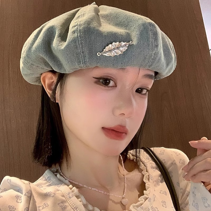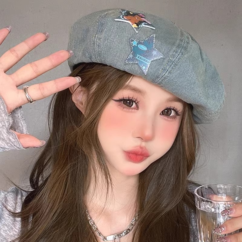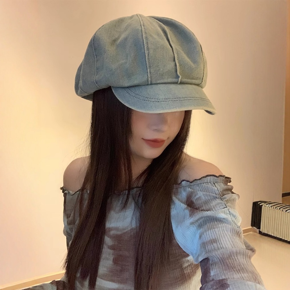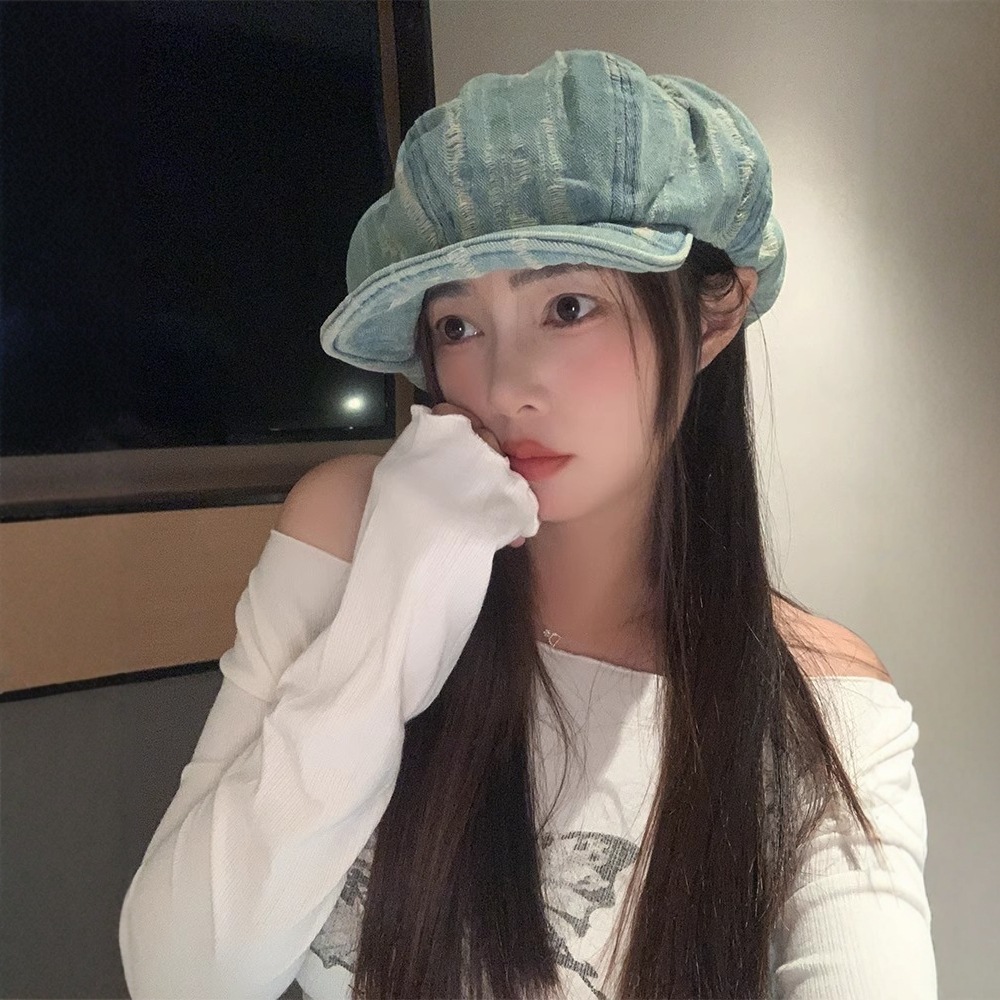 韓系は古い水洗いデニムのベレー帽を作っています。