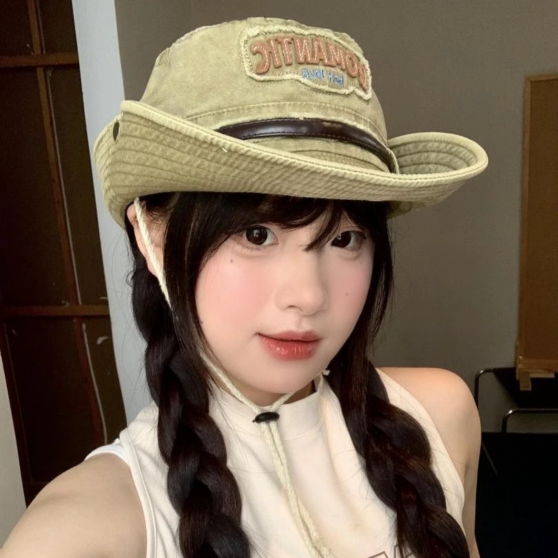 登山帽の女性屋外日よけ日焼け止め漁師帽の大きなつばの帽子2025の新型の顔の小さい西部のカウボーイの帽子