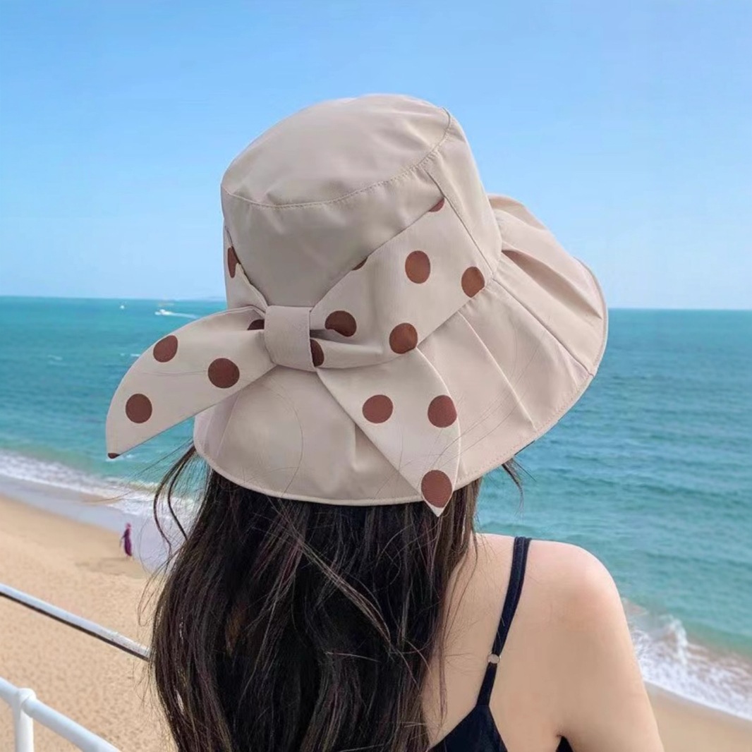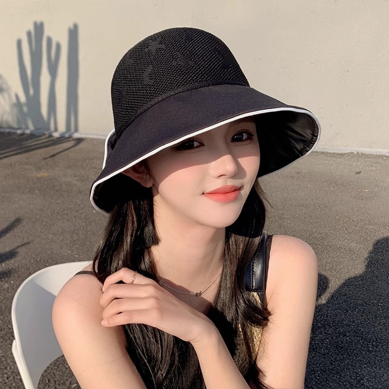 小清新漁師帽女春夏2025年新型の大きなつばが顔を見せています。