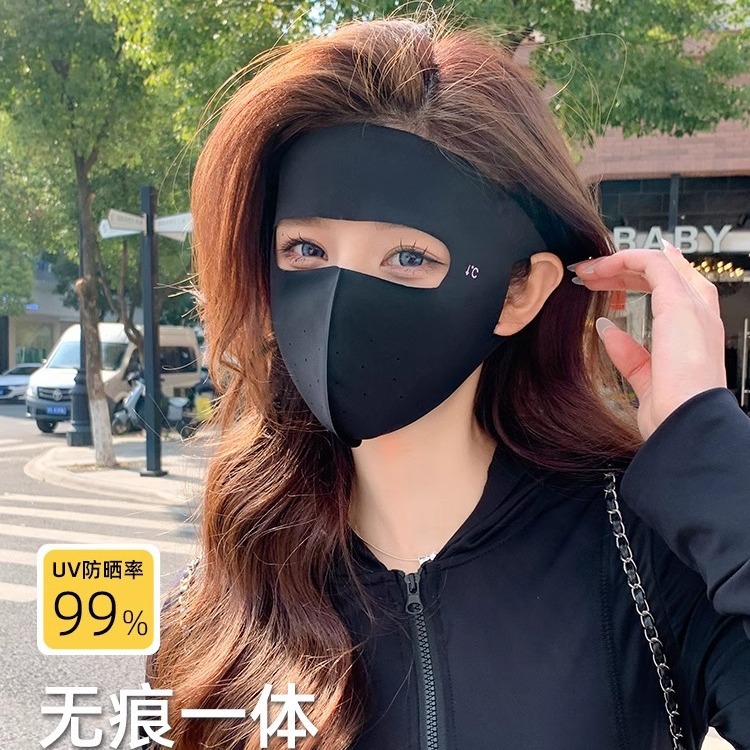 無痕全顔日焼け止めマスク女性夏紫外線防止氷糸顔ジニ顔保護運転日よけマスク