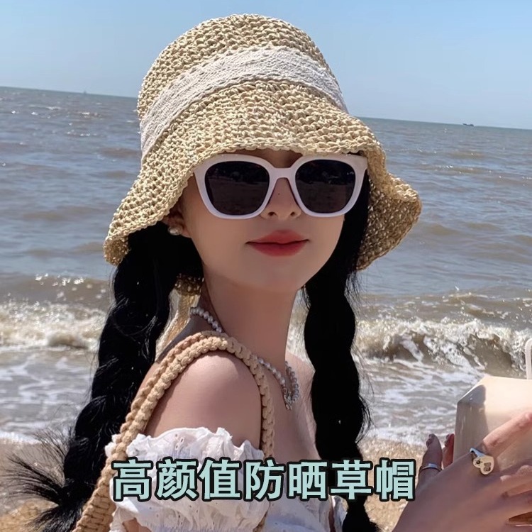 ネット赤漁師麦わら帽子女性レース帯ビーチ小清新休暇日系日焼け止め日よけ帽子太陽帽子夏