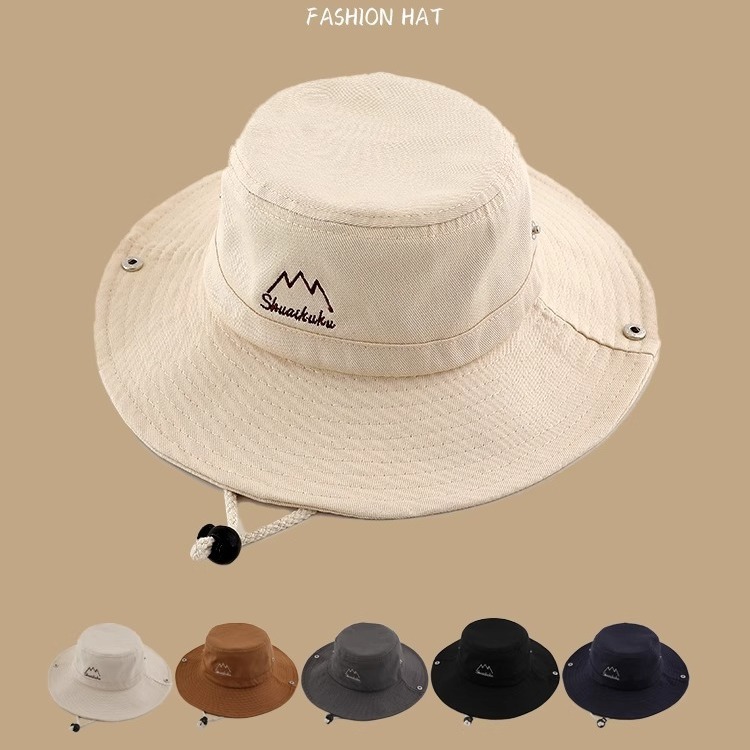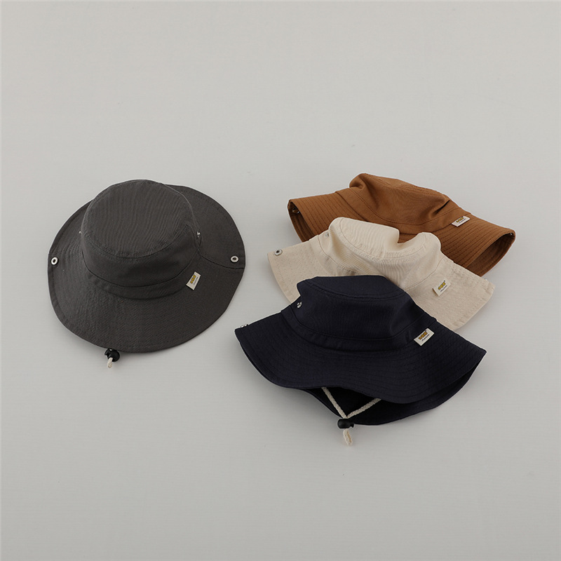 サイドバックル防風ロープ屋外日焼け止め日よけ帽子子供ファッション太陽帽子純色登山帽子大縁漁師帽子