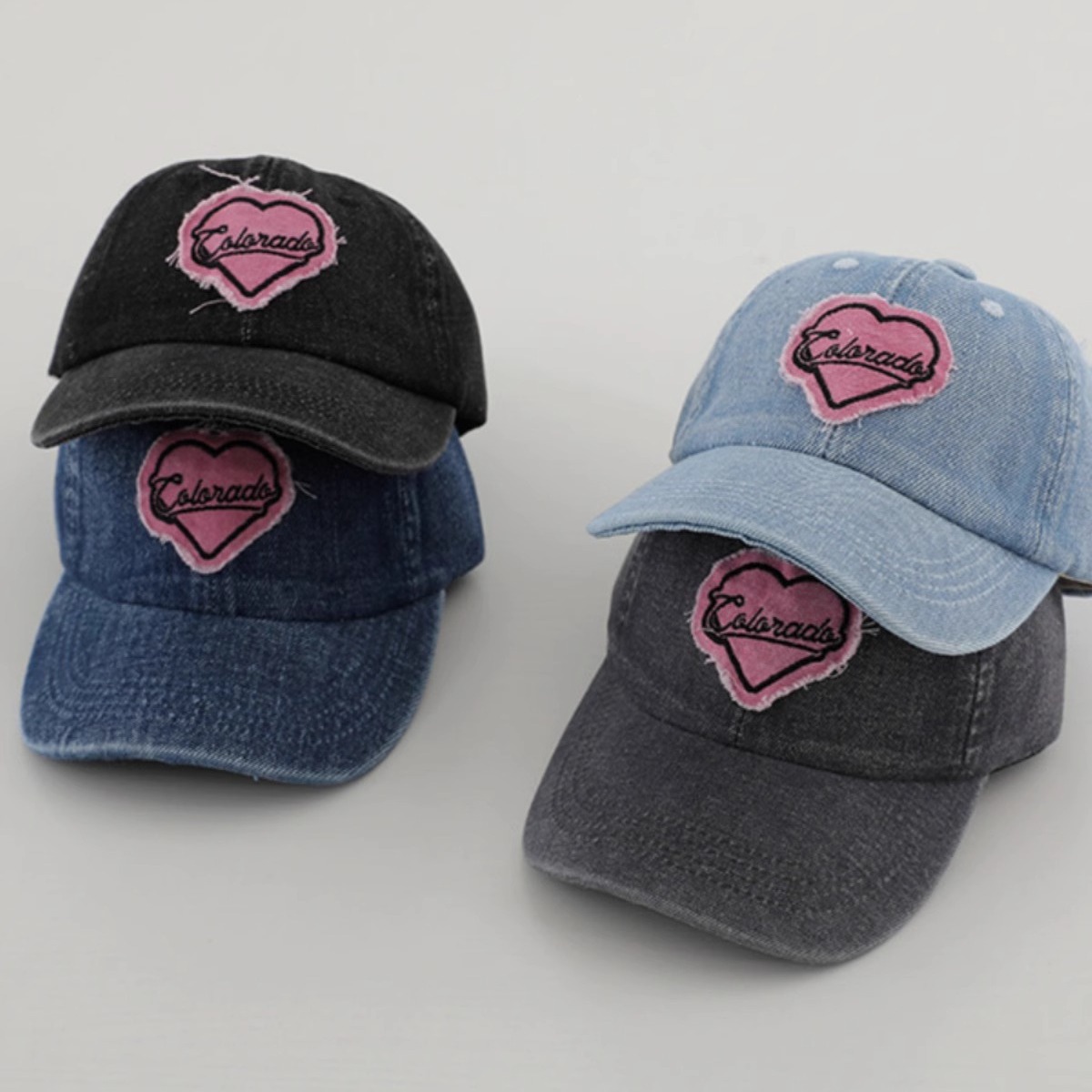 新しい子供のアヒルの舌の帽子は古い柔らかいトップのデニムの愛の刺繍をします。