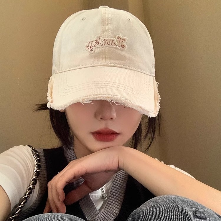 古い縁の野球帽を作る女性2024の新しいサイズの頭の周りに顔の小さいアヒルの舌の帽子の柔らかい頂の広いつばのベージュの帽子が現れます。