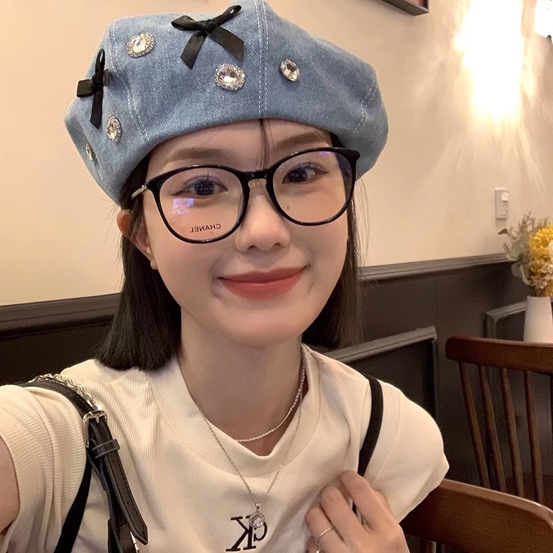 甘くて濃厚です。新しいデニムの蝶結びのベレー帽の女性は春夏の薄いタイプの通気性のレトロな百合の八角帽子の潮です。