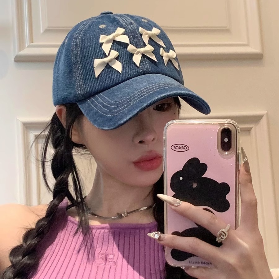 蝶結びのアヒルの舌の帽子の女性の2024の新型の春の夏の韓国版の百合insの水洗いのカウボーイの日よけの野球帽