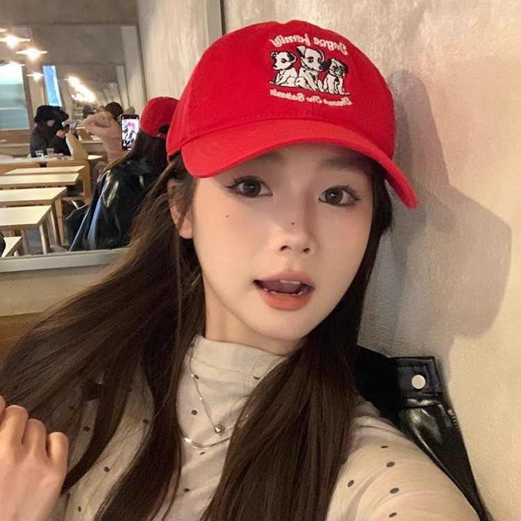 小衆のレトロな赤い野球帽の子供の春夏の新型のかわいい犬の刺繍のアヒルの舌の帽子の男の百合の大きい頭の周り