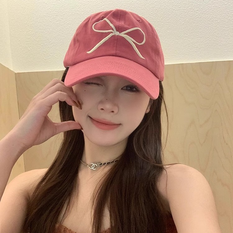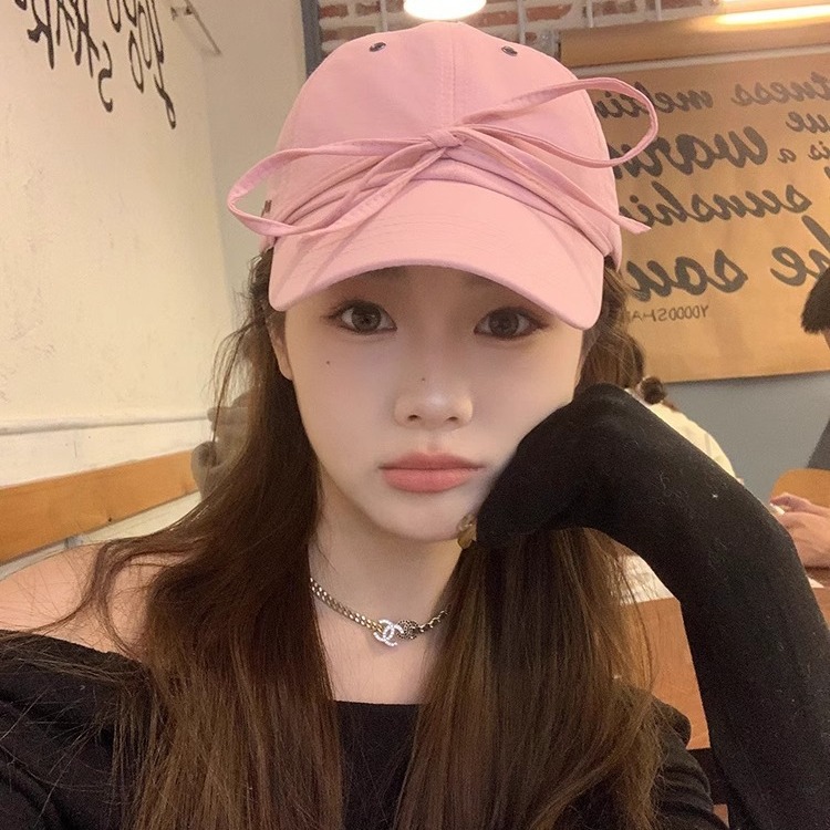 韓国版ins甘い蝶結び野球帽女春夏の小衆百合綿ソフトトップピンクのアヒルの舌帽男