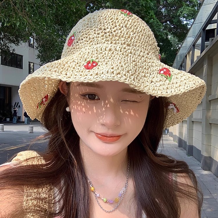 草の帽子の女性の金の2024の新型のネットの赤い麦わら帽子の夏の紫外線を防ぐ日よけの日よけの休暇の日よけの帽子