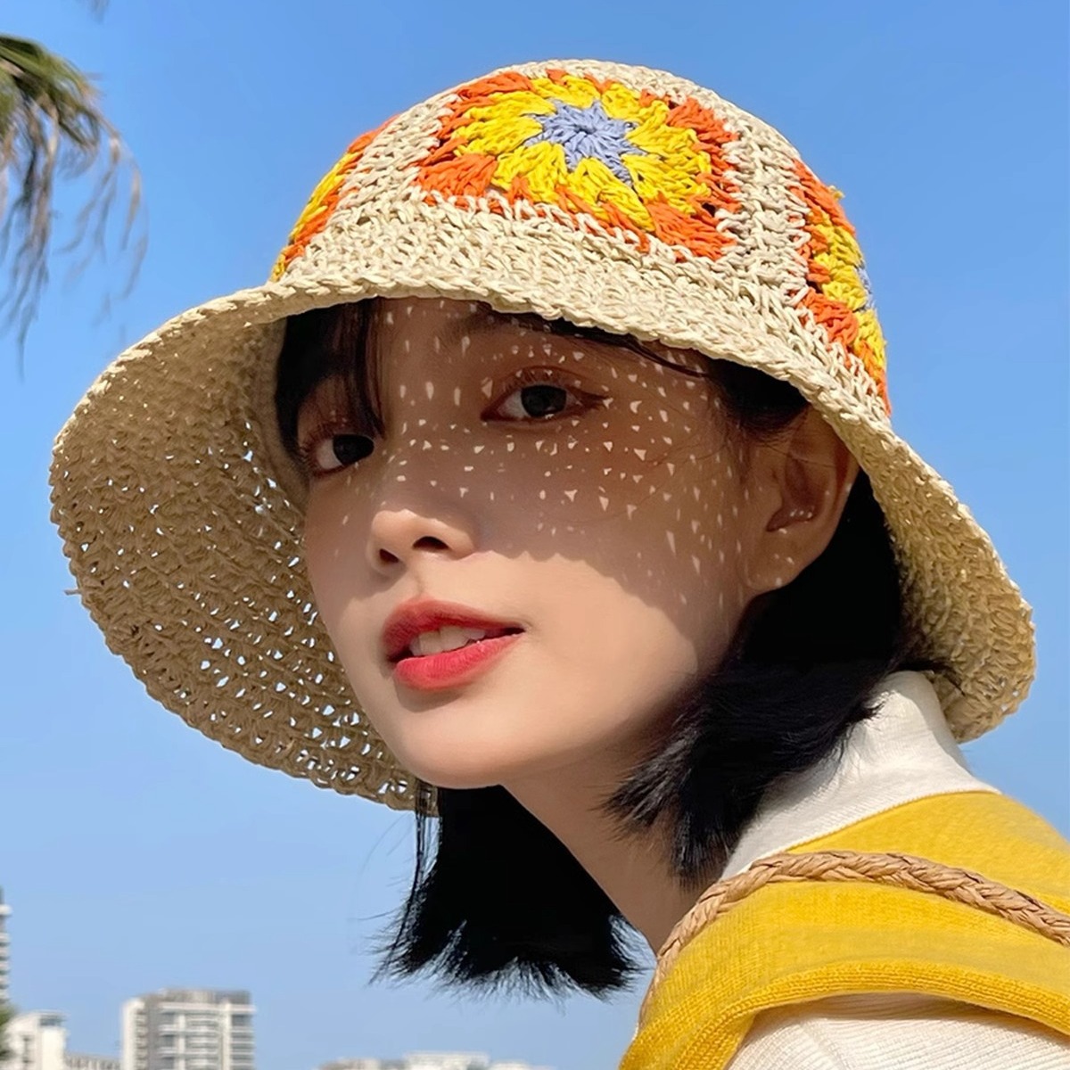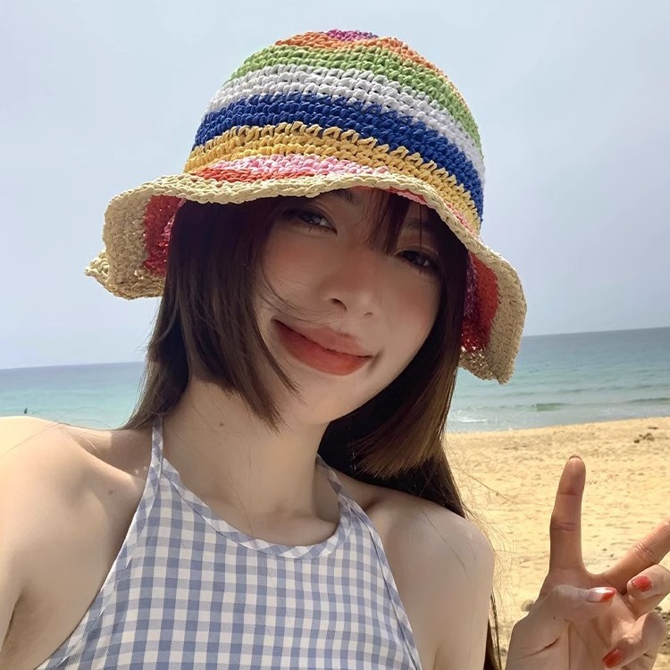 2024新型麦わら帽子女夏日よけ帽子海辺の砂浜折り畳み漁師帽子旅行日よけ帽子