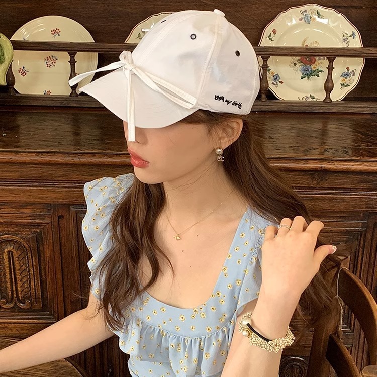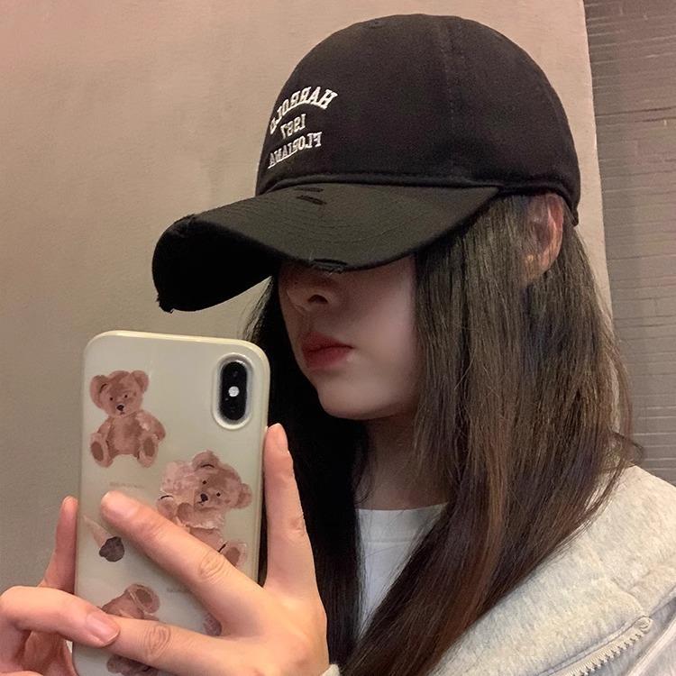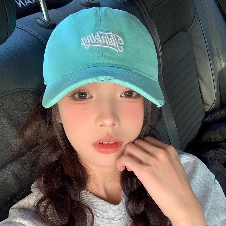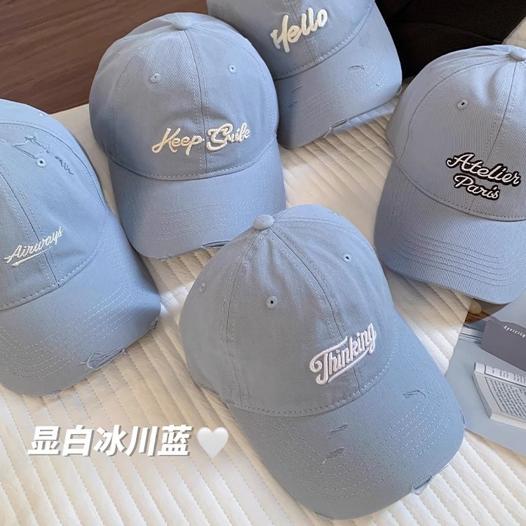 アメリカ文字刺繍破洞野球帽女春夏2024新型百合レジャー甘い個性鴨舌帽