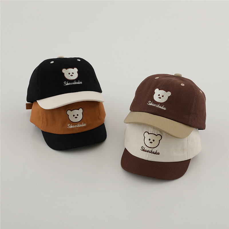 赤ちゃんの帽子と秋の韓国版の色合わせの熊のアヒルの舌の帽子の夏の男女の子供は日焼け止めの野球の帽子の韓国版の潮を合わせます。