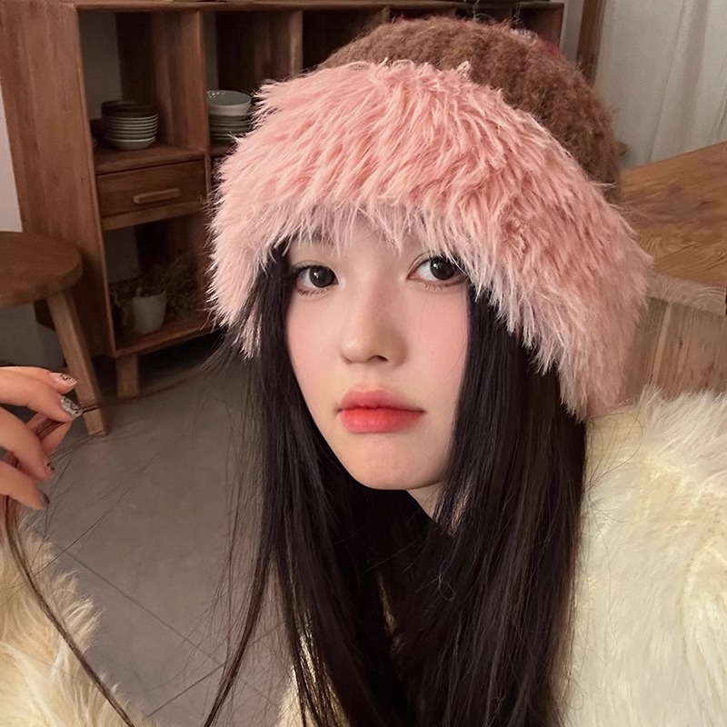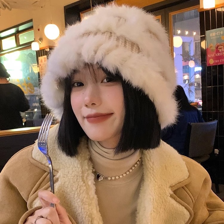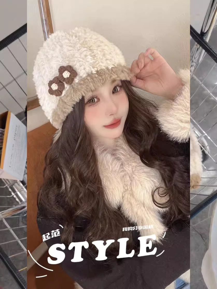 甘さはウサギの毛の花の毛糸の帽子の女性の秋冬の文芸の小さい清新な柔らかいモチモチのぬいぐるみの保温のニットの帽子の頭をまねます。