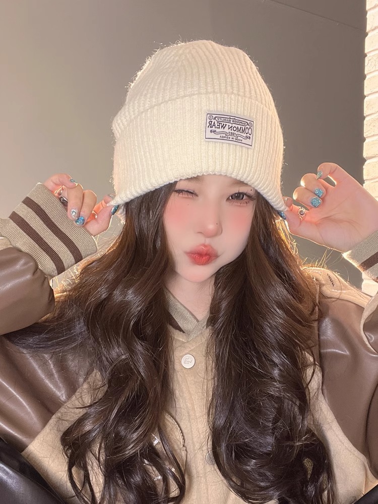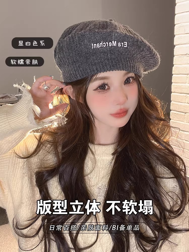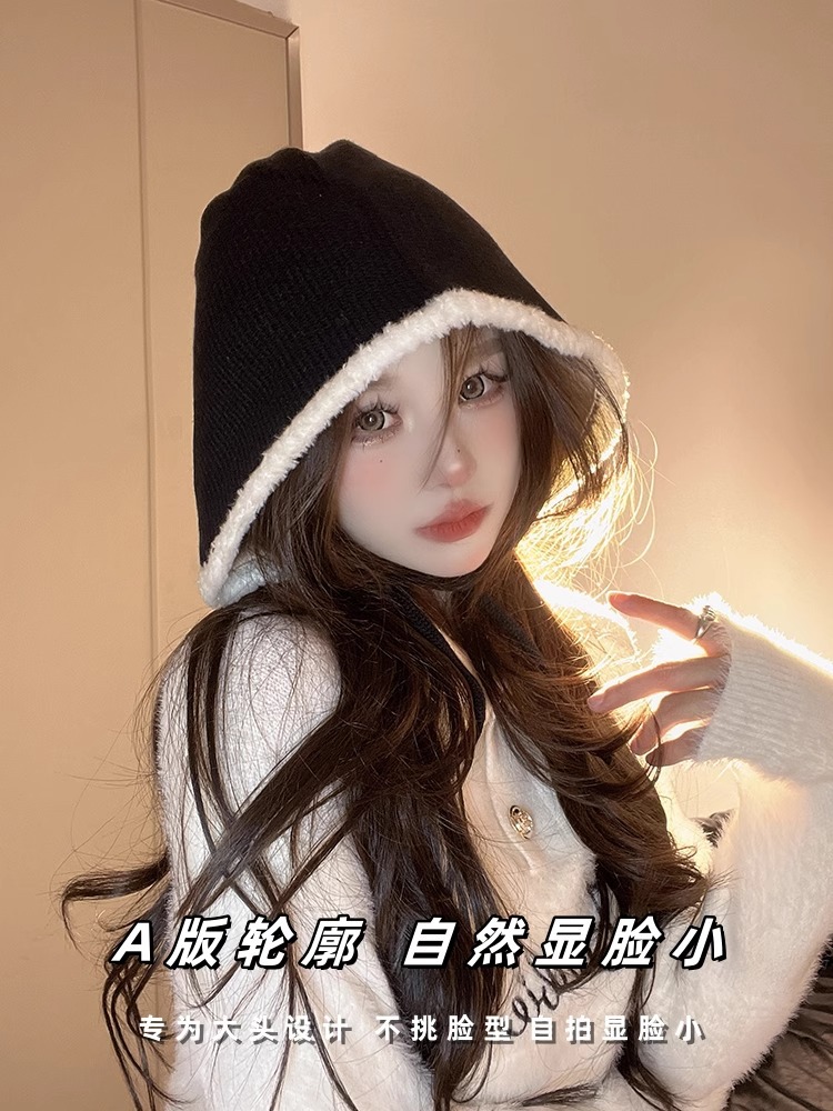 秋冬のかわいい甘包頭帽子の女性は顔を見せています。
