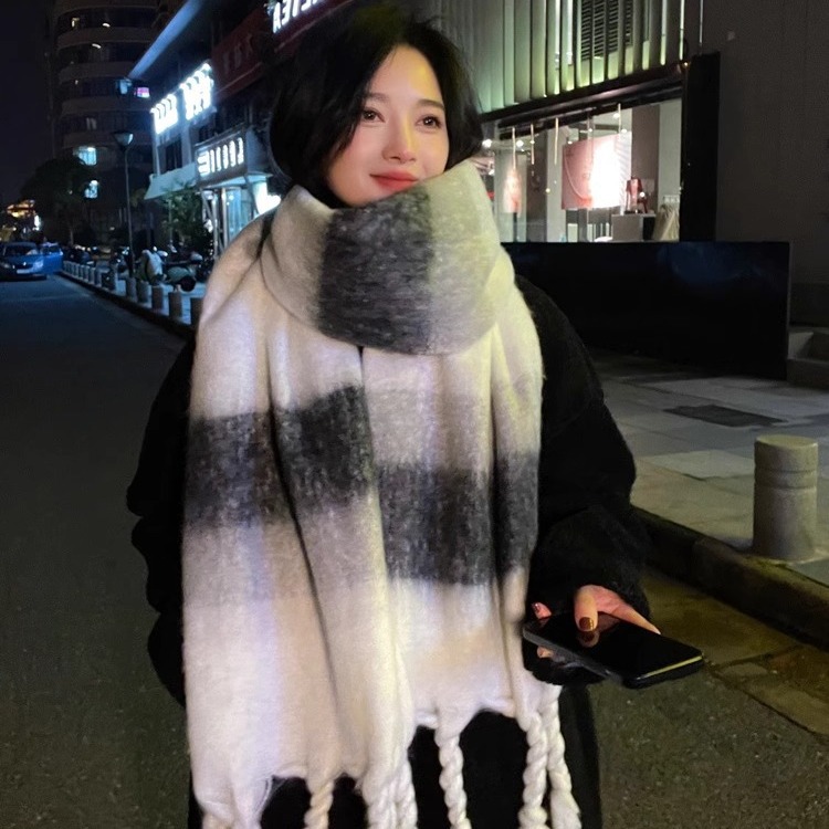 高級感白黒グラデーションマフラーを厚くして、超大型版保温マント馬海毛マフラー秋冬女