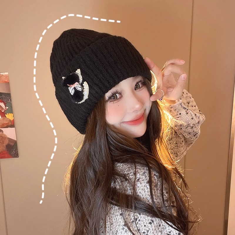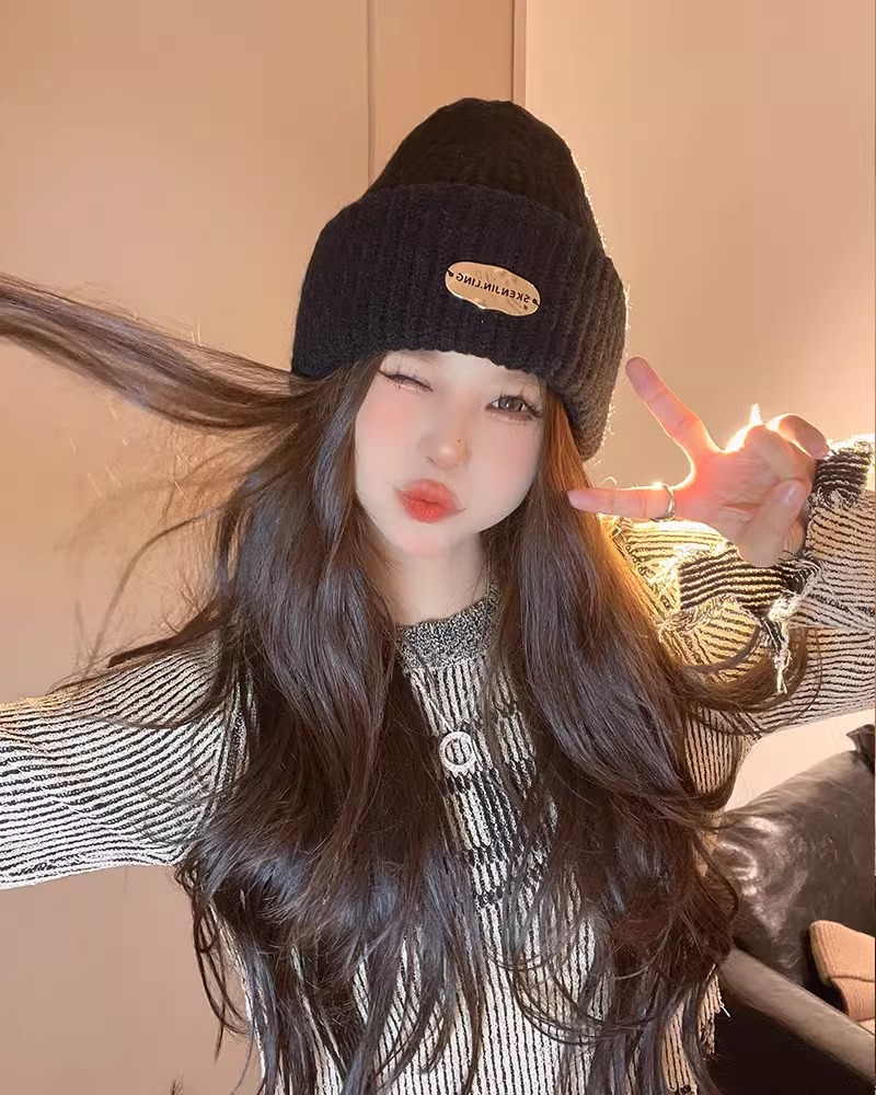 甘くて可愛い毛糸帽子の女性は秋冬によく似合います。