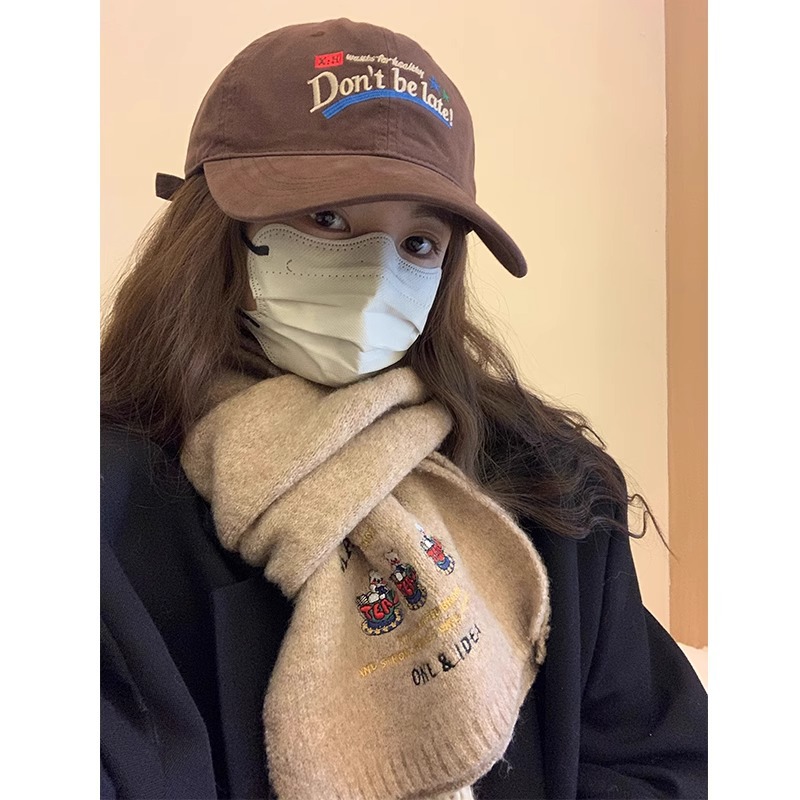 日本のかわいい熊刺繍ウール混紡マフラー女性秋冬保温学生カップル
