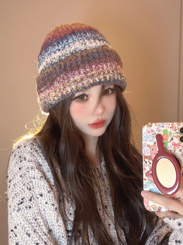 街頭のドーパミン虹のバンドのニット帽の子供の秋冬2023の新型の保温の耳のカバーの毛糸の帽子