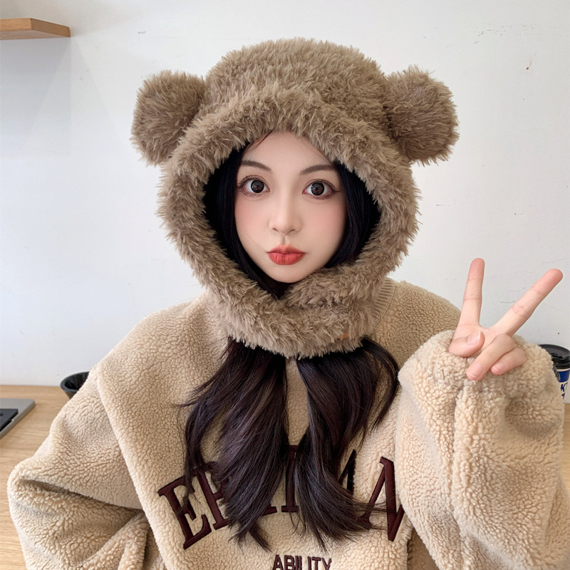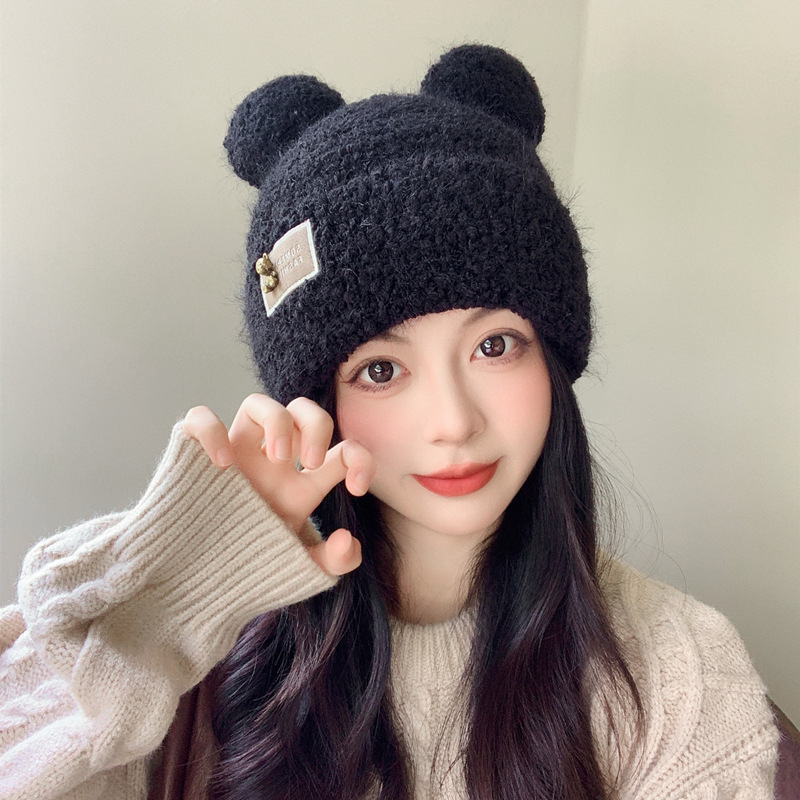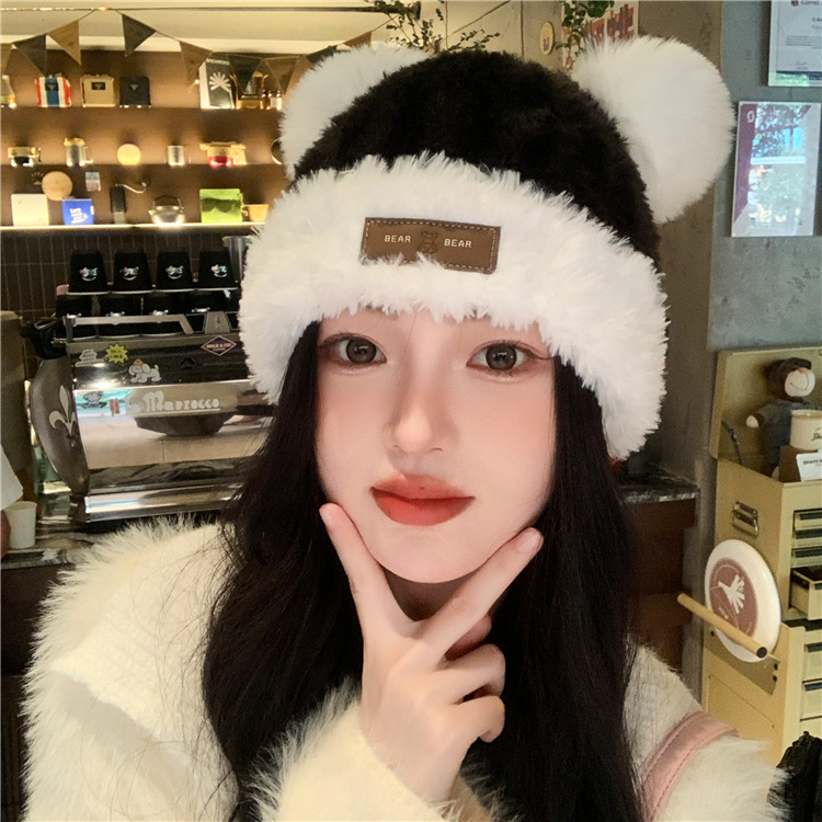 甘いかわいいベアーのベルベットの帽子の女性は秋冬に布をつけて保温防寒耳を厚くして毛糸帽を編む