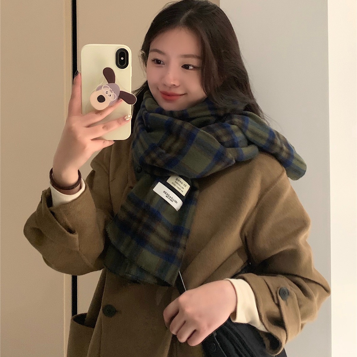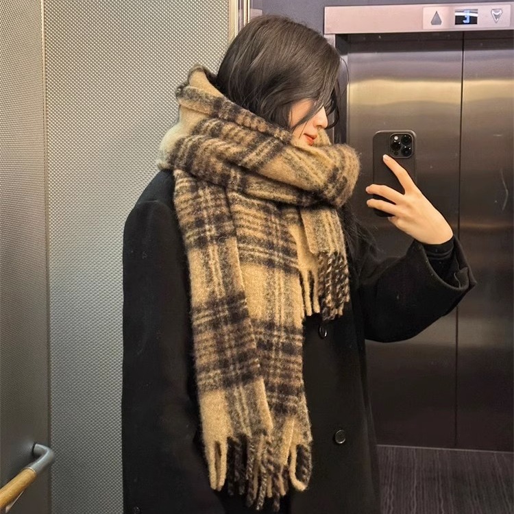 マフラーの女子学生は冬の2024の新型の格子縞の高級感を合わせて韓国版のフリンジのマフラーを巻いて保温してマントの潮を厚くします。