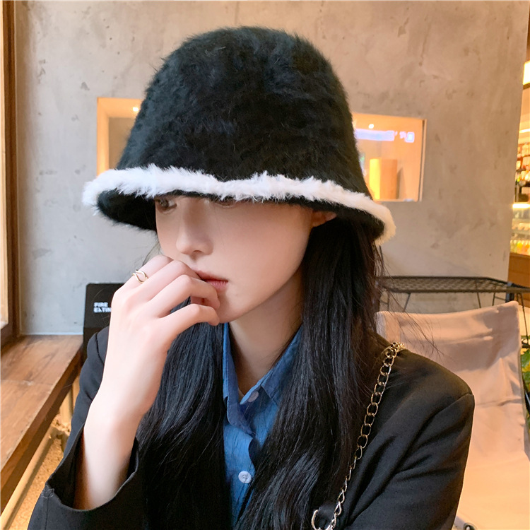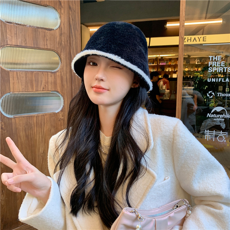 黒のぬいぐるみ漁師帽女2023新秋冬小香風顕顔小素顔ニットバケツ月子帽子
