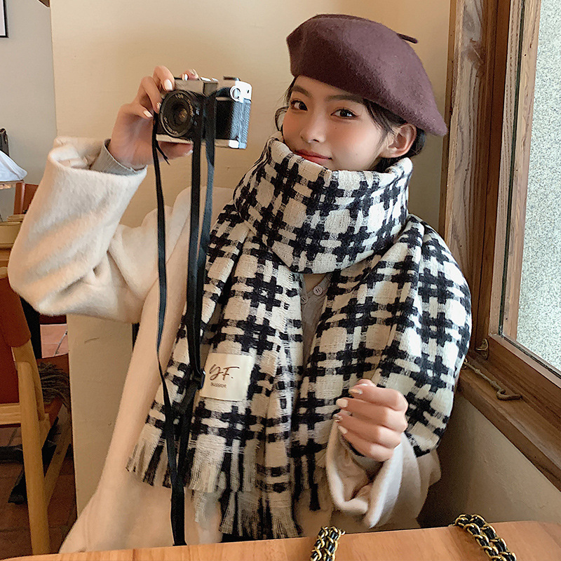 格子のマフラーの女性の冬の韓国版の潮のinsの百合の英倫の風は厚くて暖かいです秋冬の学生の両用のマフラー
