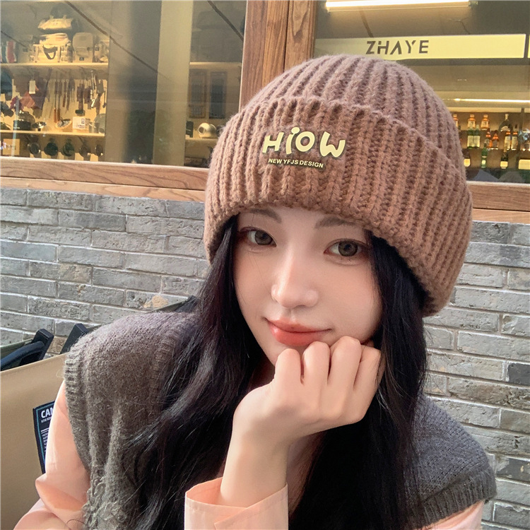 帽子の女性の秋冬の個性の刺繍の保温の毛糸の帽子の百合の冷たい帽子のゆったりしている大きい頭の周りは顔の小さいニットの帽子を現します。