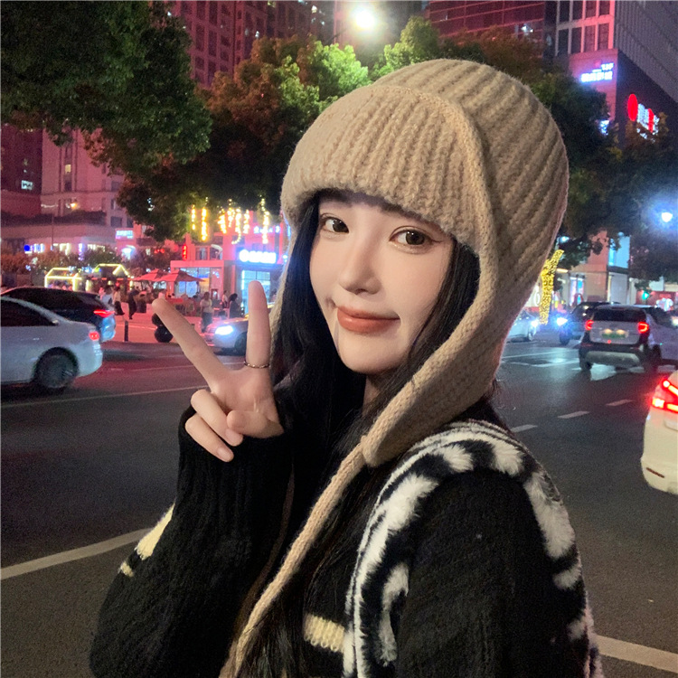 韓国版小衆帽子女性秋冬虹保温ニット帽手織り毛糸帽子カバーヘッドカバー耳保護潮