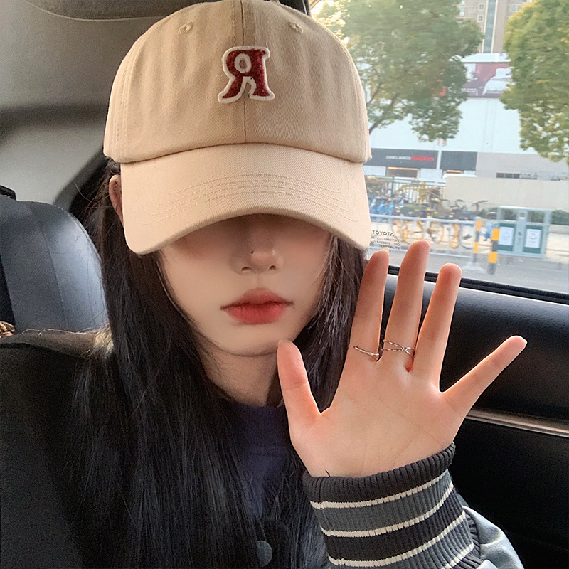 Rアルファベット野球帽女性春夏百合顔の小さい大きい頭の囲みのアヒルの舌の帽子の柔らかい頂の広いつばのベージュの帽子の潮