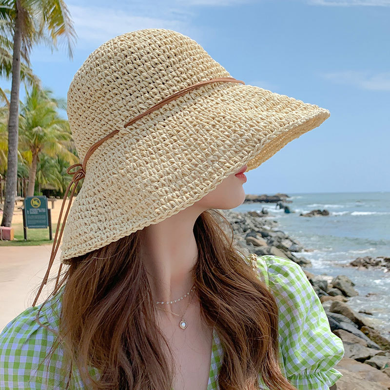パンパン夏帽子insカラー麦わら帽子小清新海辺休暇折り畳み日焼け止めビーチ帽子女