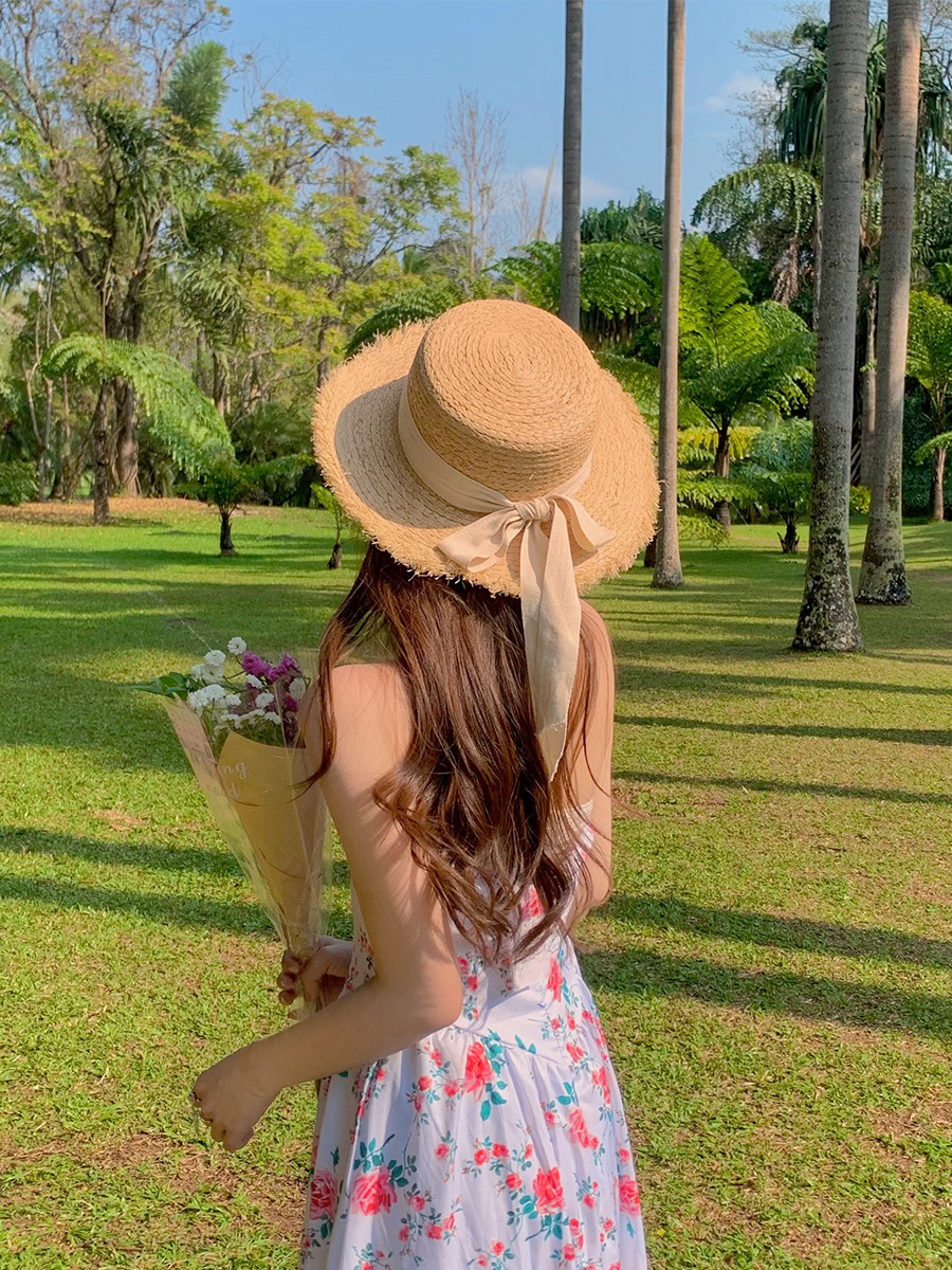 シャンゼリゼの蝶結びは麦わら帽子を編んでいます。