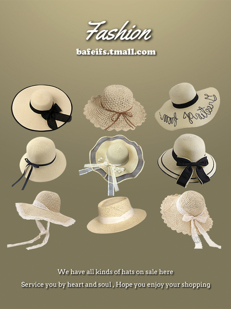 パンパン夏帽子insカラー麦わら帽子小清新海辺休暇折り畳み日焼け止めビーチ帽子女