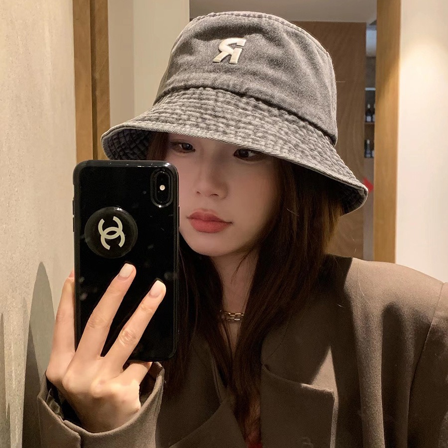 Rアルファベット水洗いカウボーイ漁師帽女2023年春カジュアルな日よけ盆帽の頭周りは顔が小さい
