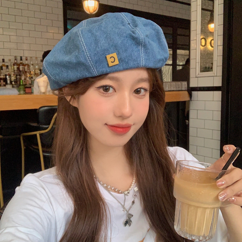 春のデニムブルーのベレー帽の女性のアルファベットの韓国風のイギリス風のネットの赤い個性の百合の帽子の画家の帽子