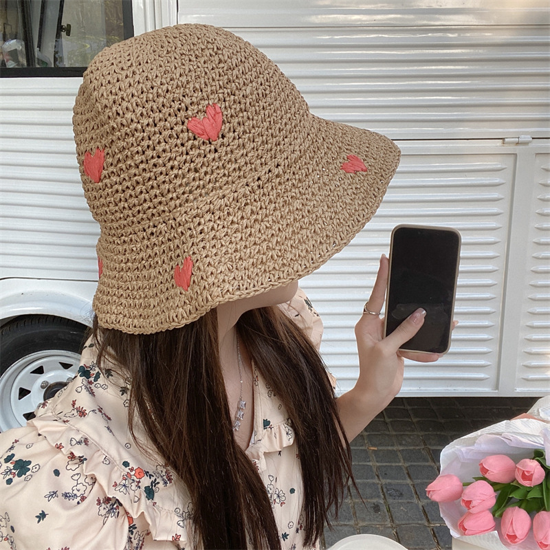 紫外線防止の大きな軒の草は漁師の帽子の女性の夏を編んで愛の麦わら帽子の砂浜の通気性の日よけの日焼け止めのたらいの帽子を編みます。