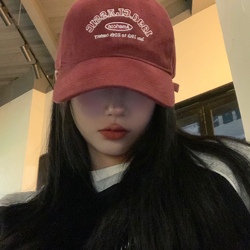 アメリカのレトロな野球帽の女性の水洗いデニムの大きい頭はアヒルの舌の帽子のアルファベットの柔らかい頂の広いつばのワインの赤い帽子を囲みます。