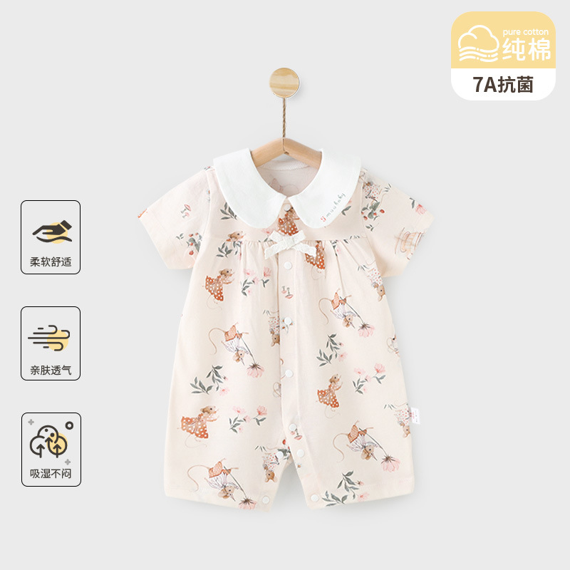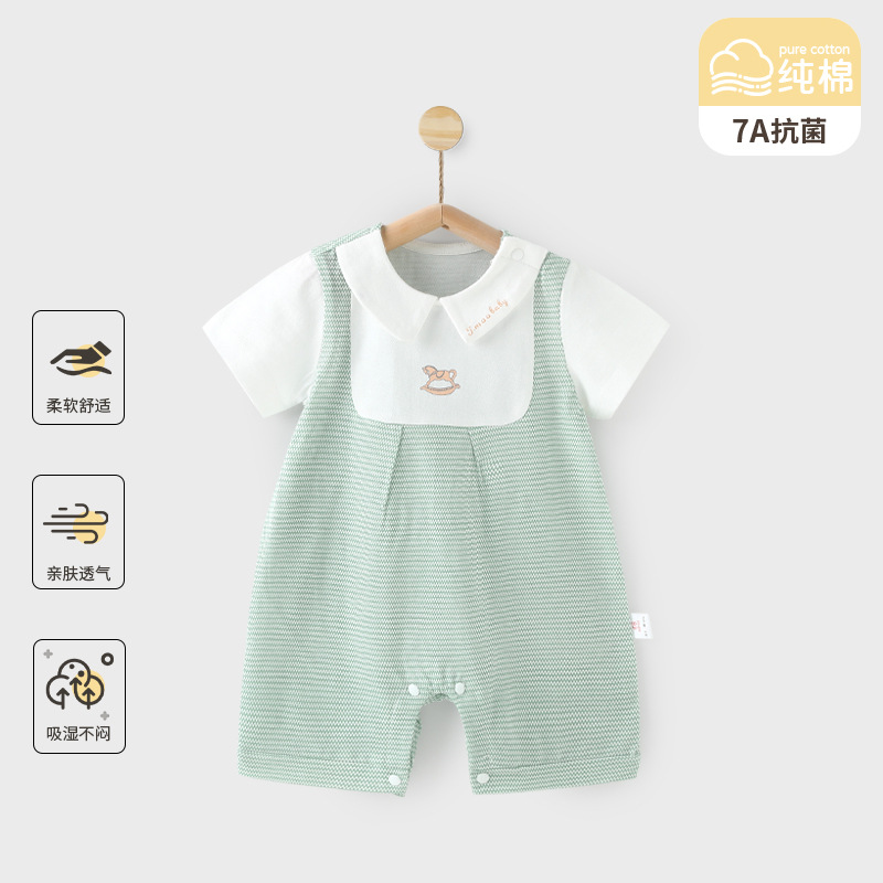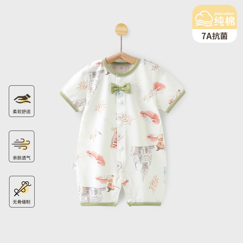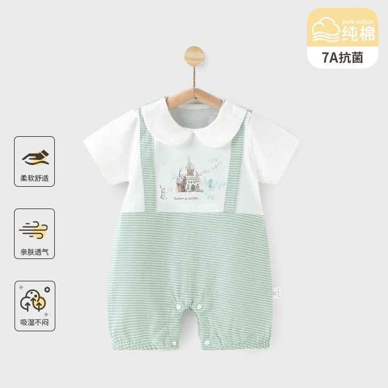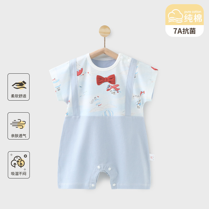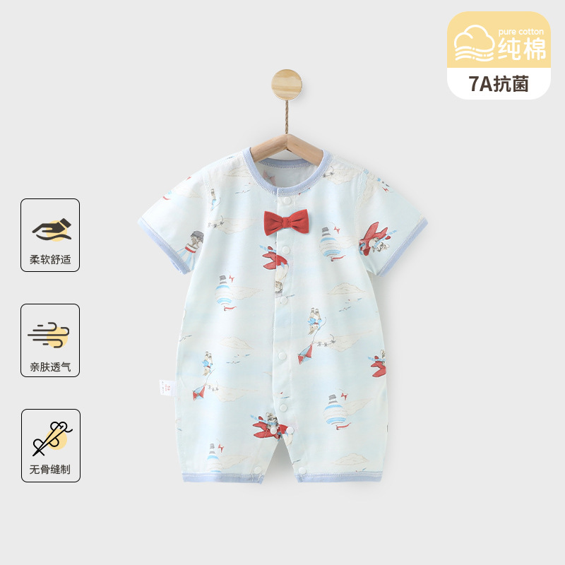 赤ちゃんの半袖のワンピースの夏のエアコン服の男女の赤ちゃんの純綿の服の薄いタイプの通気性の抗菌は服を登ります。