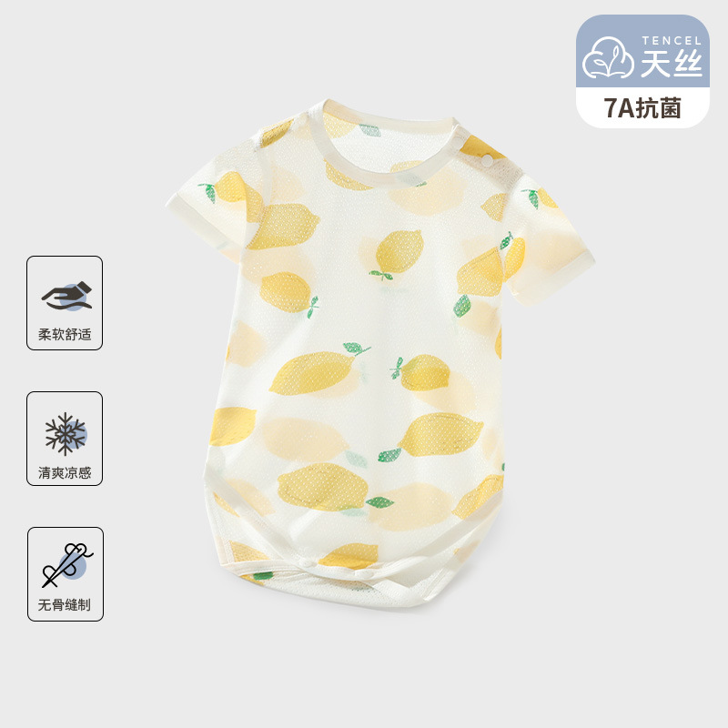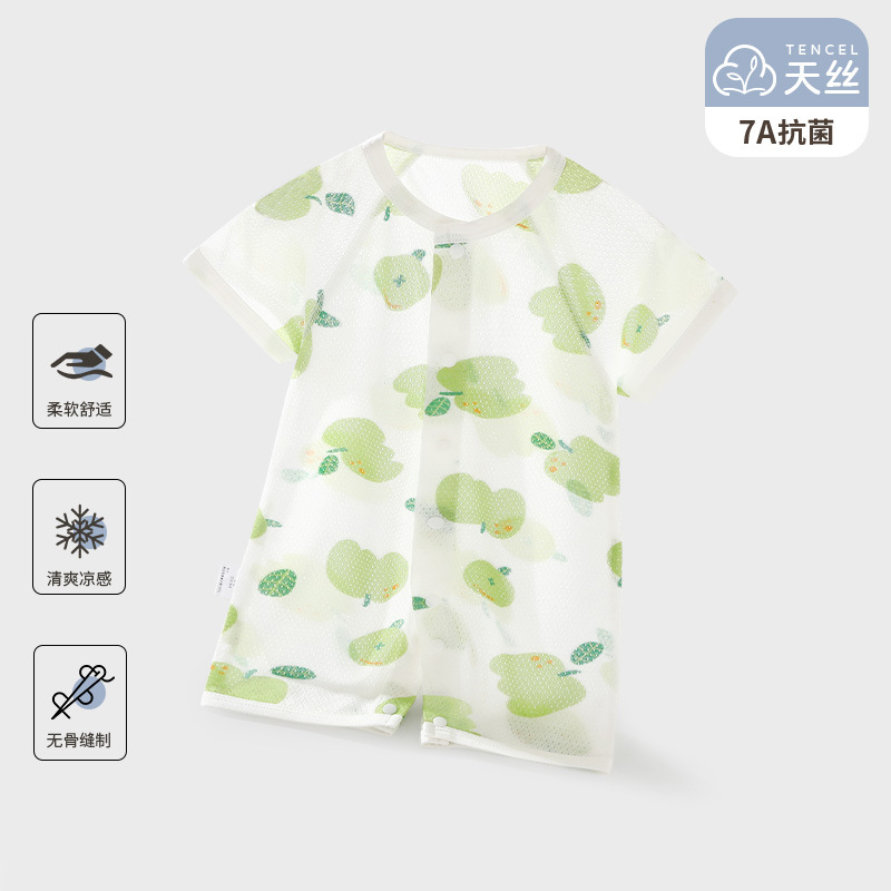 赤ちゃんの服の夏の薄いタイプの天糸の半袖はお尻の服の新生児のパジャマの赤ちゃんのライゼルのワンピースの夏服を包みます。