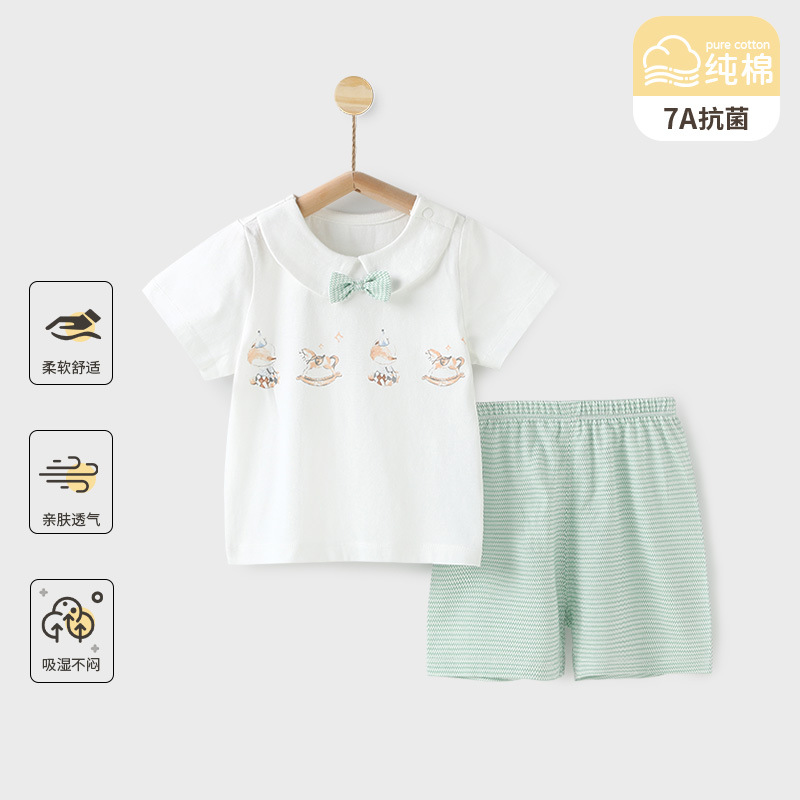 夏の半袖の半ズボンのスーツの赤ちゃんの純綿の薄いタイプの部屋の服の赤ちゃんのエアコンの服の男女の子供の夏服