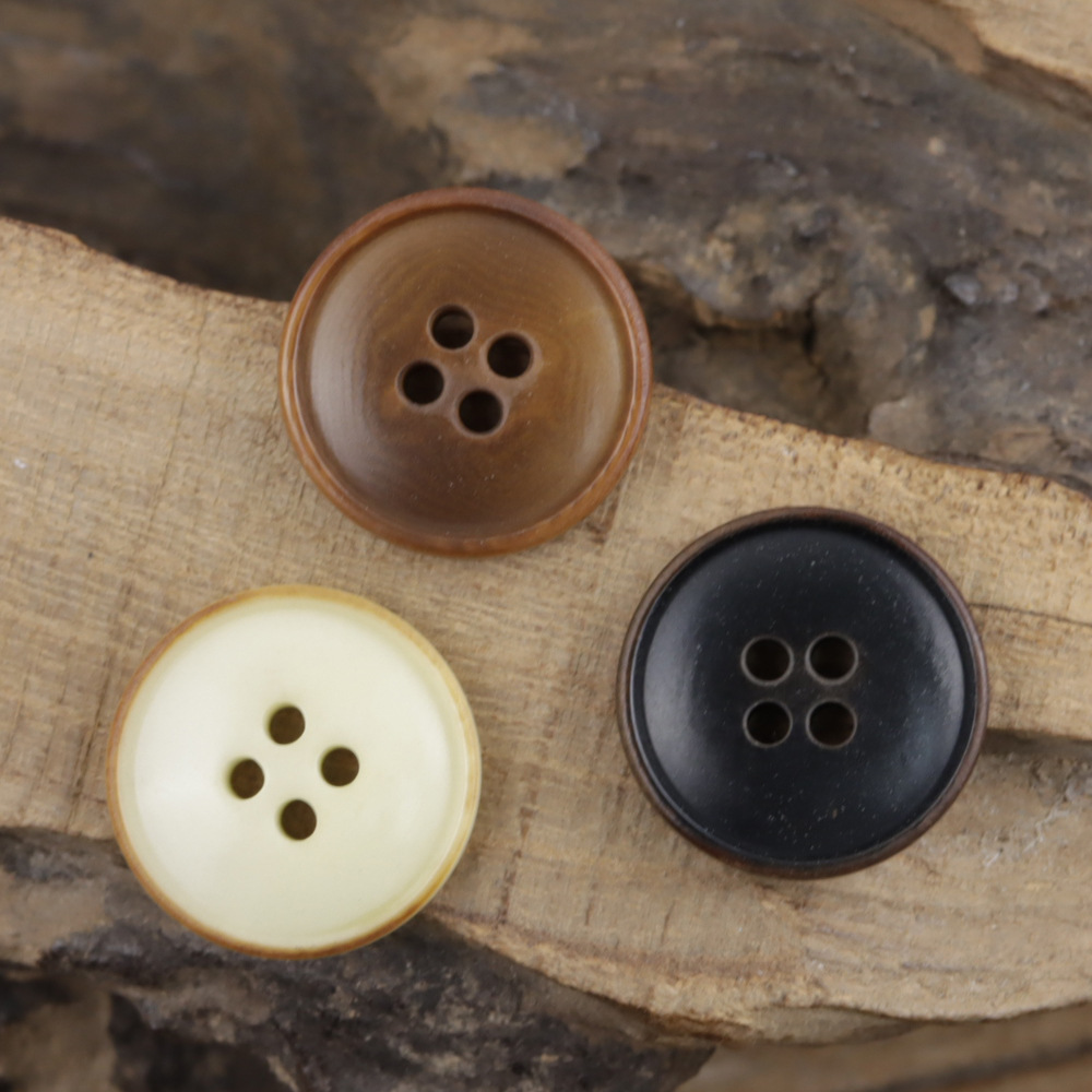 カジュアルレトロ日系中性風黒真牛角ボタンコーヒー色フロストセーター風衣天然ボタン