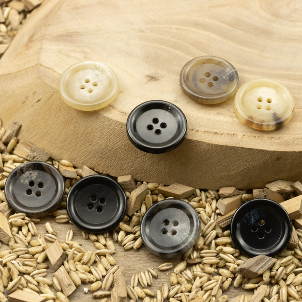 平面ベージュは大理石の質感のスーツのコートの樹脂ボタンのコーヒー色の黒いセーターのボタンをまねます。