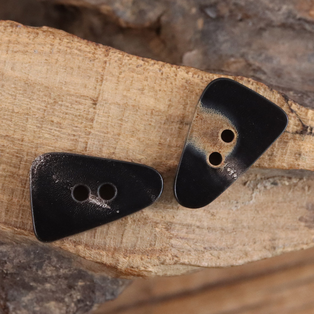 志禾の現物の天然水牛の角の火は古い砂の黒色の4つの目の細い辺の真の牛の角のボタンをまねます。