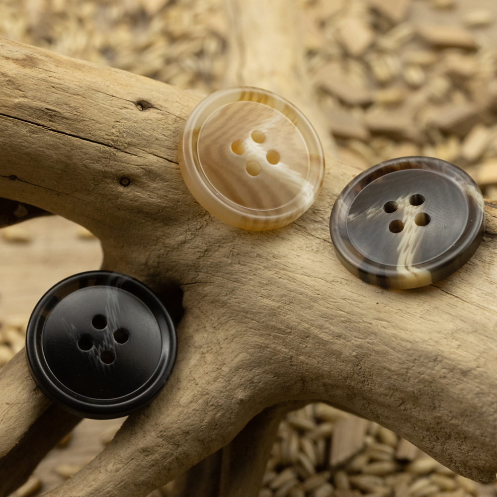 薄いコーヒーの色は本当に牛の角のボタンの茶色の毛の服は4目のガイドのスーツのスーツのスーツのスーツの制服のコートのボタンを掛けます。