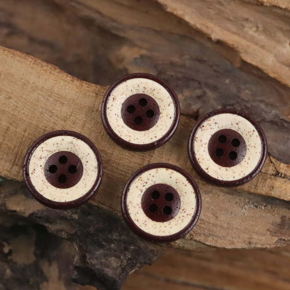 漂白色のベージュ色のレトロなシャツのカーディガンpoloボタンのコーヒー色の黒色の木目の文芸のシャツの樹脂のボタン