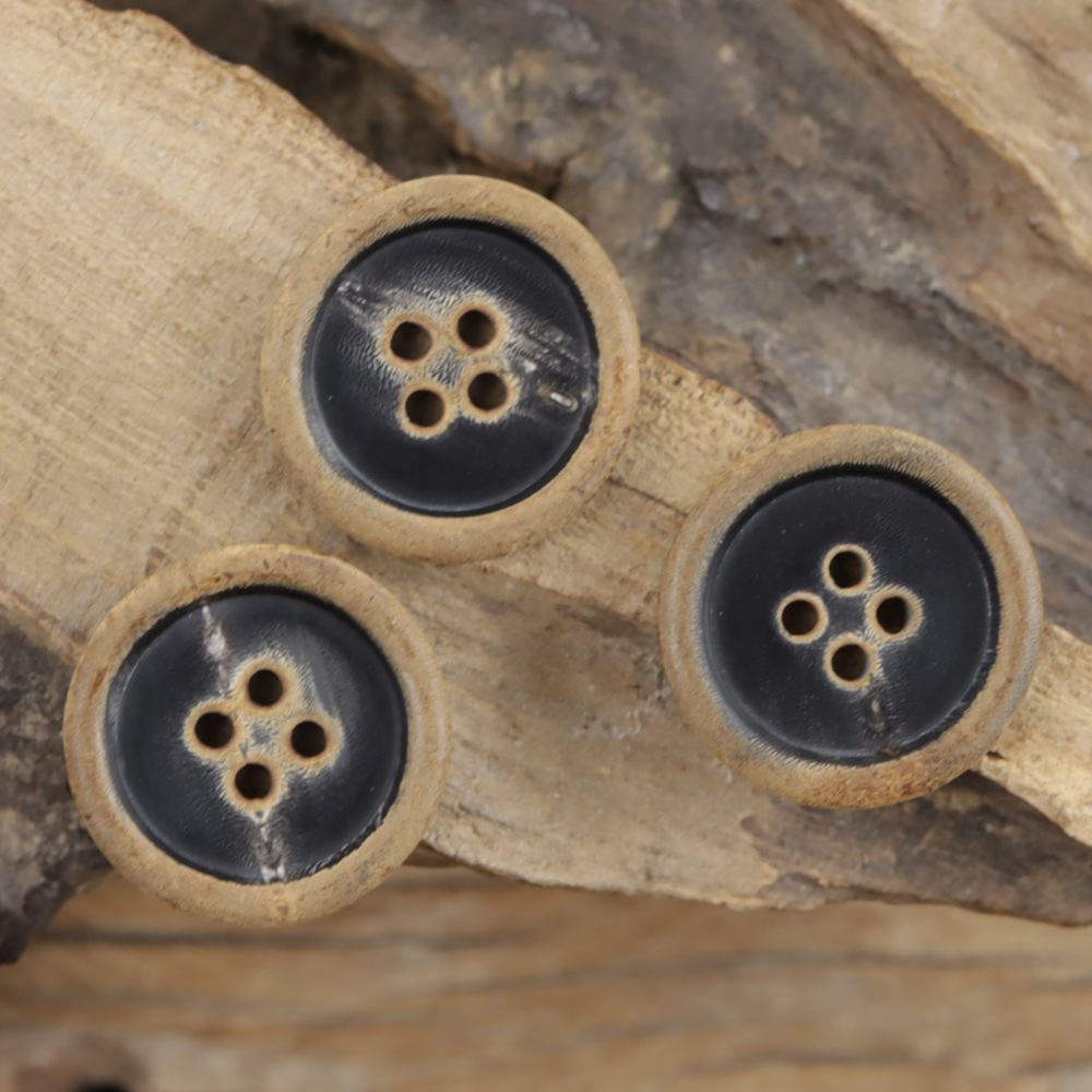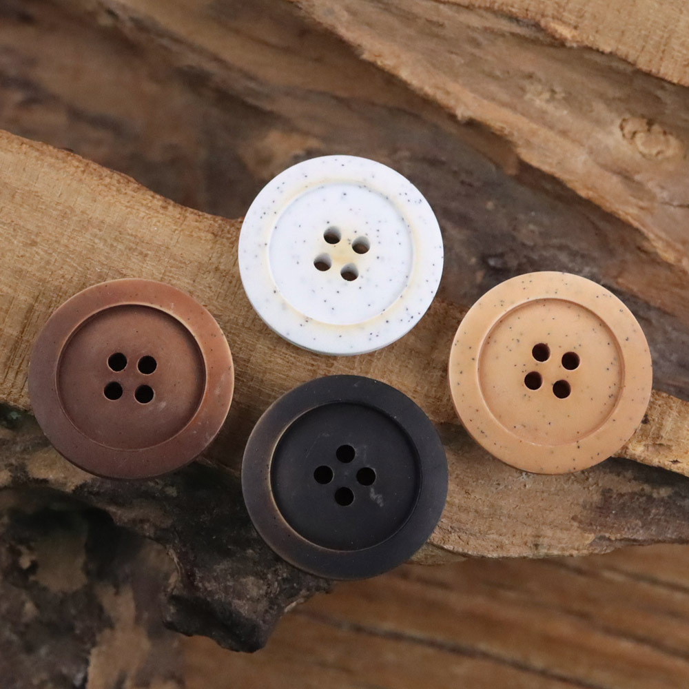 カーキ色の樹脂ボタンは牛の角のスーツの大きい服をまねて金属の組み合わせの平面の男女の風の服のコートのボタンを掛けます。