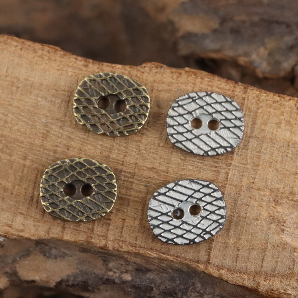 レトロな2つの目の菱の紋様の金属のデニムのシャツの黒古錫の工装のズボンのワンピースの装飾のボタン