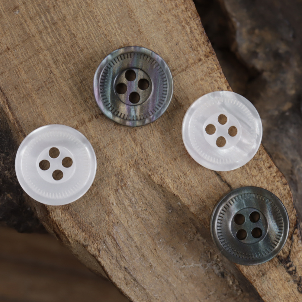 白い黒い貝殻のシャツの樹脂ボタンの黒い灰色の細い辺のシンプルな風の百合のシャツのカーディガンのボタン