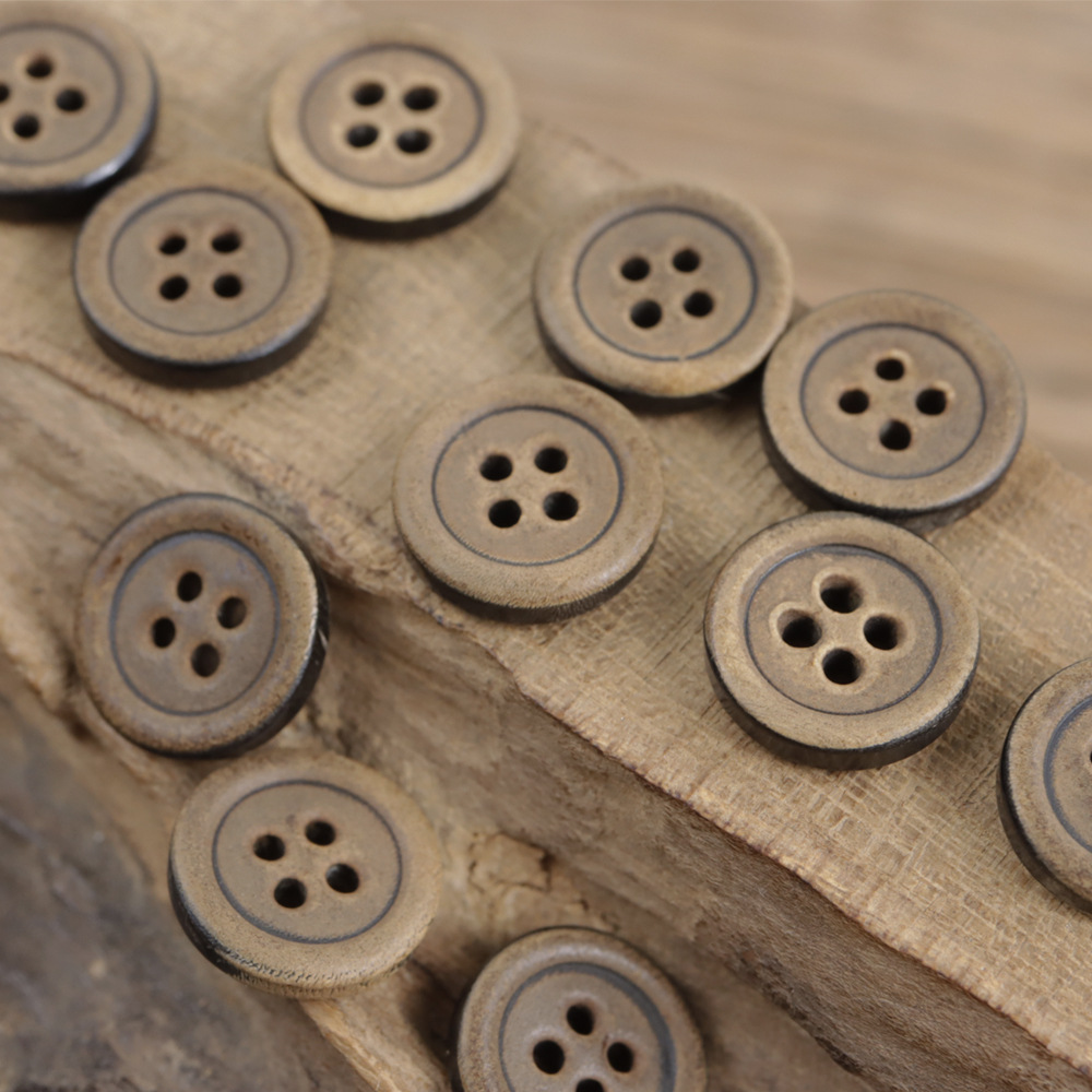原色の細い辺の綿の麻のシャツの竹のボタンの4つの目の復古の原木の色のシャツのボタンの木の色のボタン