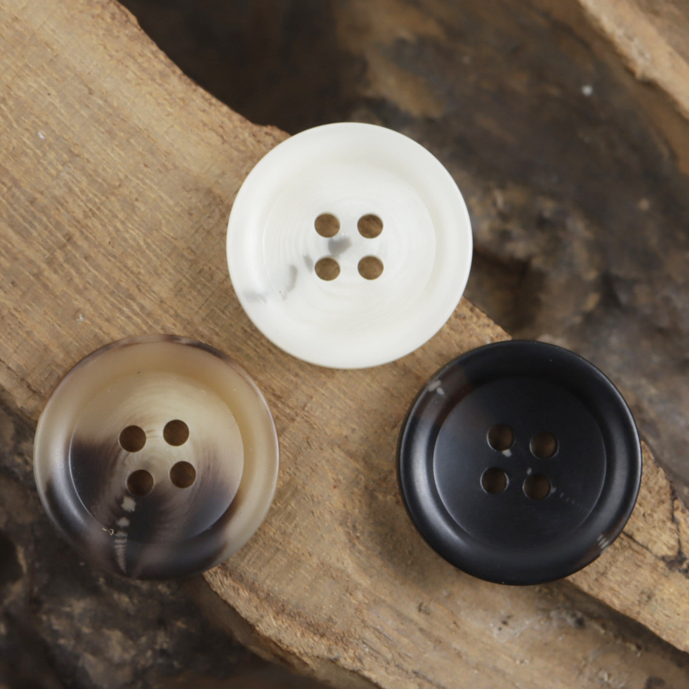 マットベージュの白いカジュアルなスーツのセーター樹脂ボタンコーヒー色の黒いスーツのコートの毛のコートのボタン