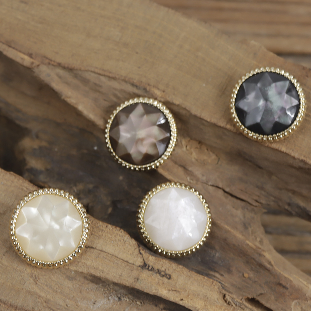 ベージュの白いひし形の小さい香りの復古風は貝のボタンの金属のボタンのスーツのコートのボタンの両面の尼のコートのボタンをまねます。